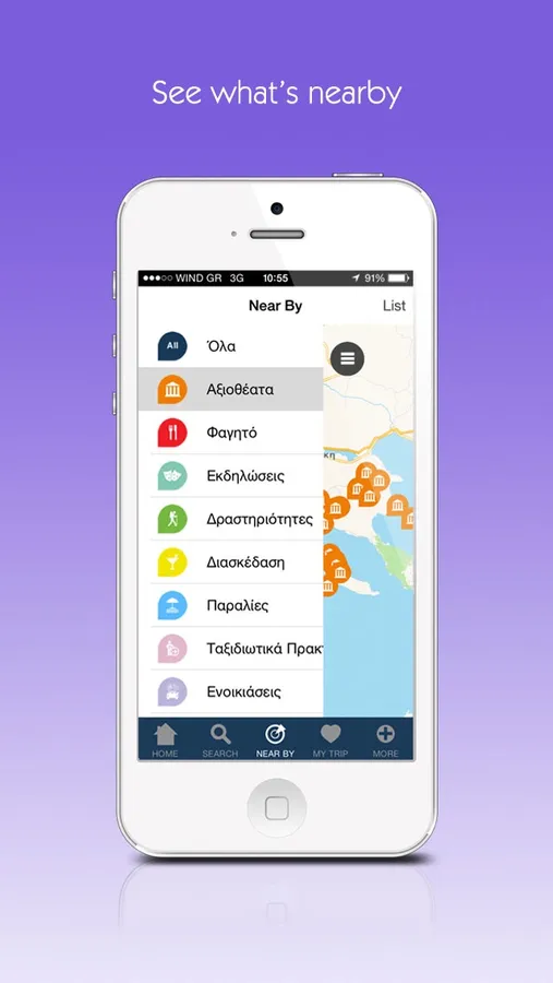 The first time you will use it, all the content will be stored on your device, while you will be online. This would seem particularly useful when you won’t have wi-fi connection, because you will be able to use the application offline. Although, stay online in order to use all smart features of the application such as Near By, Share, maps.