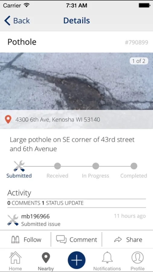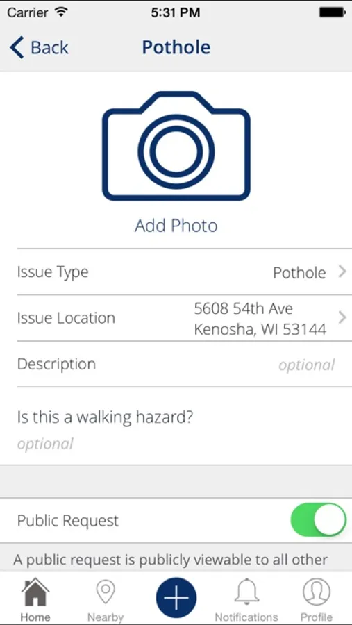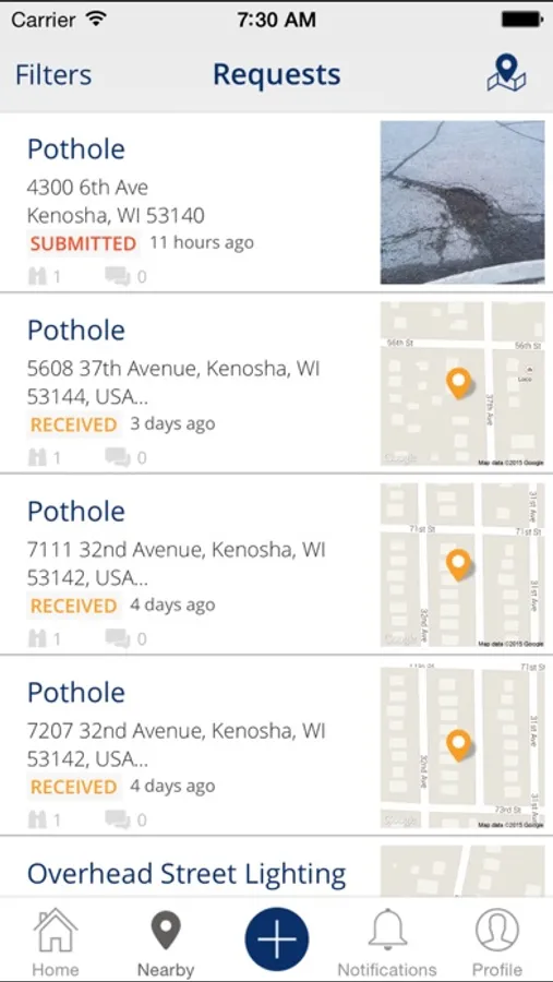 Kenosha City App allows citizens in the City of Kenosha to submit service requests