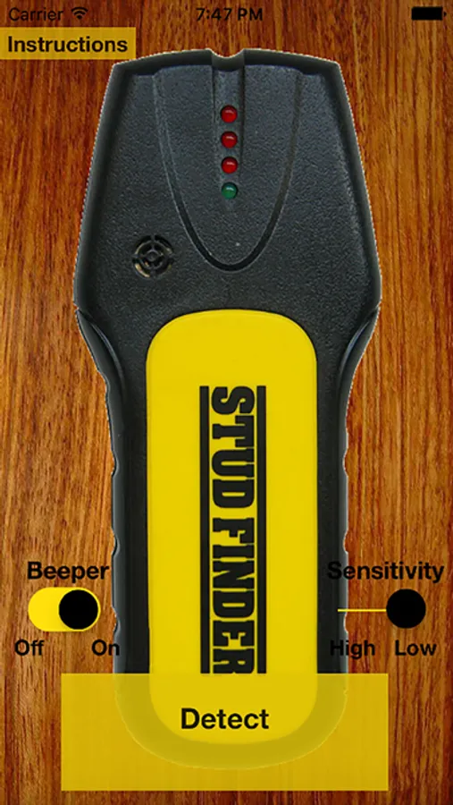 Studfinder operates in a similar manner to other hand-held stud detector tools: LED lights light up in sequence with proximity to stud as your device's magnetometer passes over the stud. However, because modern mobile devices do not have density sensors (which are used by real studfinder tools) Studfinder uses your compass (magnetometer) sensor to detect subtle changes in the background magnetic fields caused by conductive metal fasteners embedded in all studs. Because of the lack of a density sensor in mobile devices, studfinder apps cannot detect wood studs themselves, but rather, detect the metal fasteners embedded in them. Please keep this difference in mind when using Studfinder.
