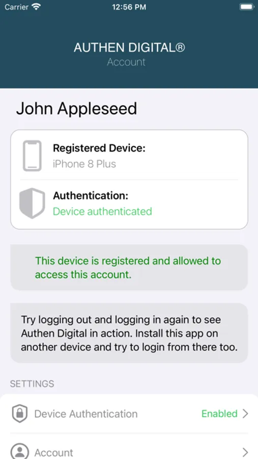 Authen Digital®, touch-free access control security, is a patented technology that identifies and stores a representation of a user’s device in the cloud when a user’s device is registered, thereby whitelisting the device. At each login thereafter the user’s device is again re-scanned (nothing is stored on a device), to grant or deny access. The verification process at each login is performed without intrusion or awareness by the user- i.e. touch-free particularly useful for verifications in Zero Trust environments for SIEM where Authen Digital both blocks and can be configured to alert an administrator of attempted intrusions. Unknown devices are simply rejected. Phishing or sharing of a user’s credentials is no longer effective. Particularly useful for Network Managers, every attempt to authenticate, successful or not, is recorded and accessible via the Authen Admin SDK or the Authen Admin App available for free at App Store for iPhone.