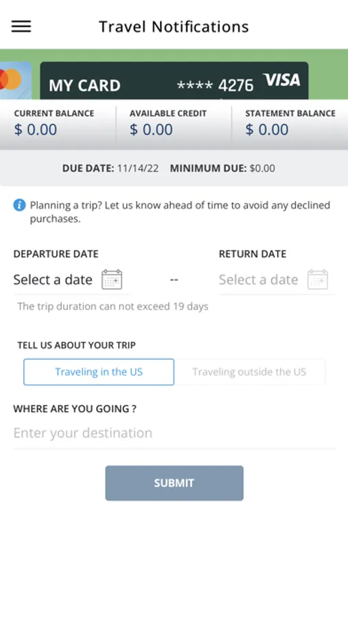 * Set up travel notification.