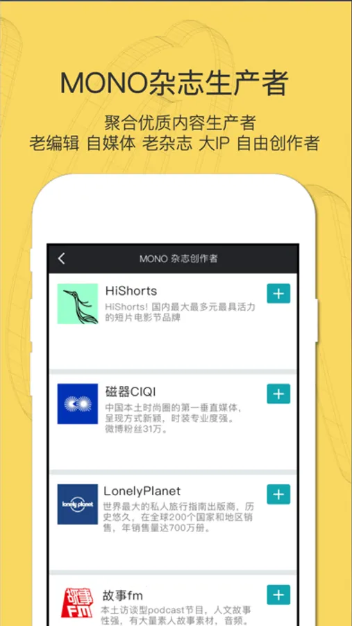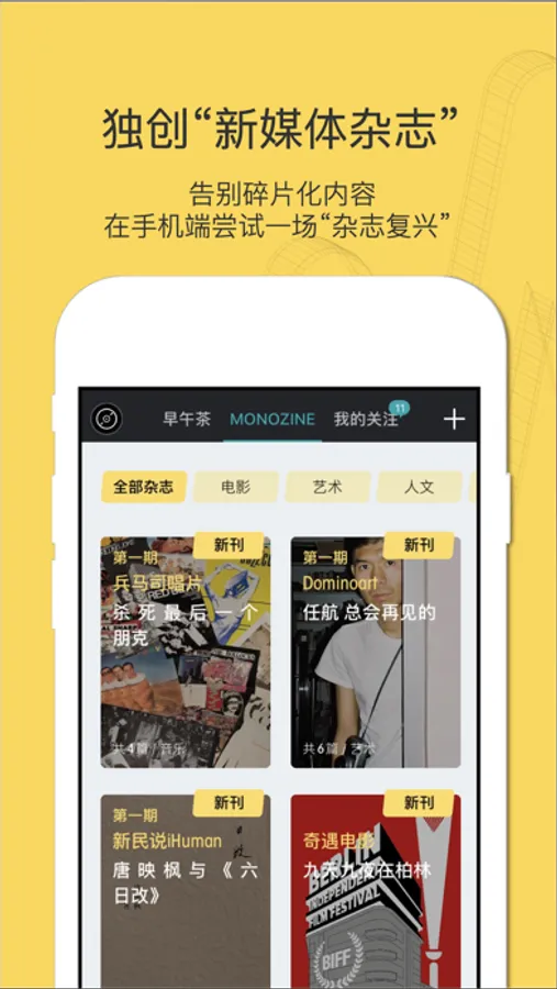 【MONOZINE】将生产内容的造物主重新定义为[杂志创作者],以移动交互为探索,网罗市面上所有的优质内容。