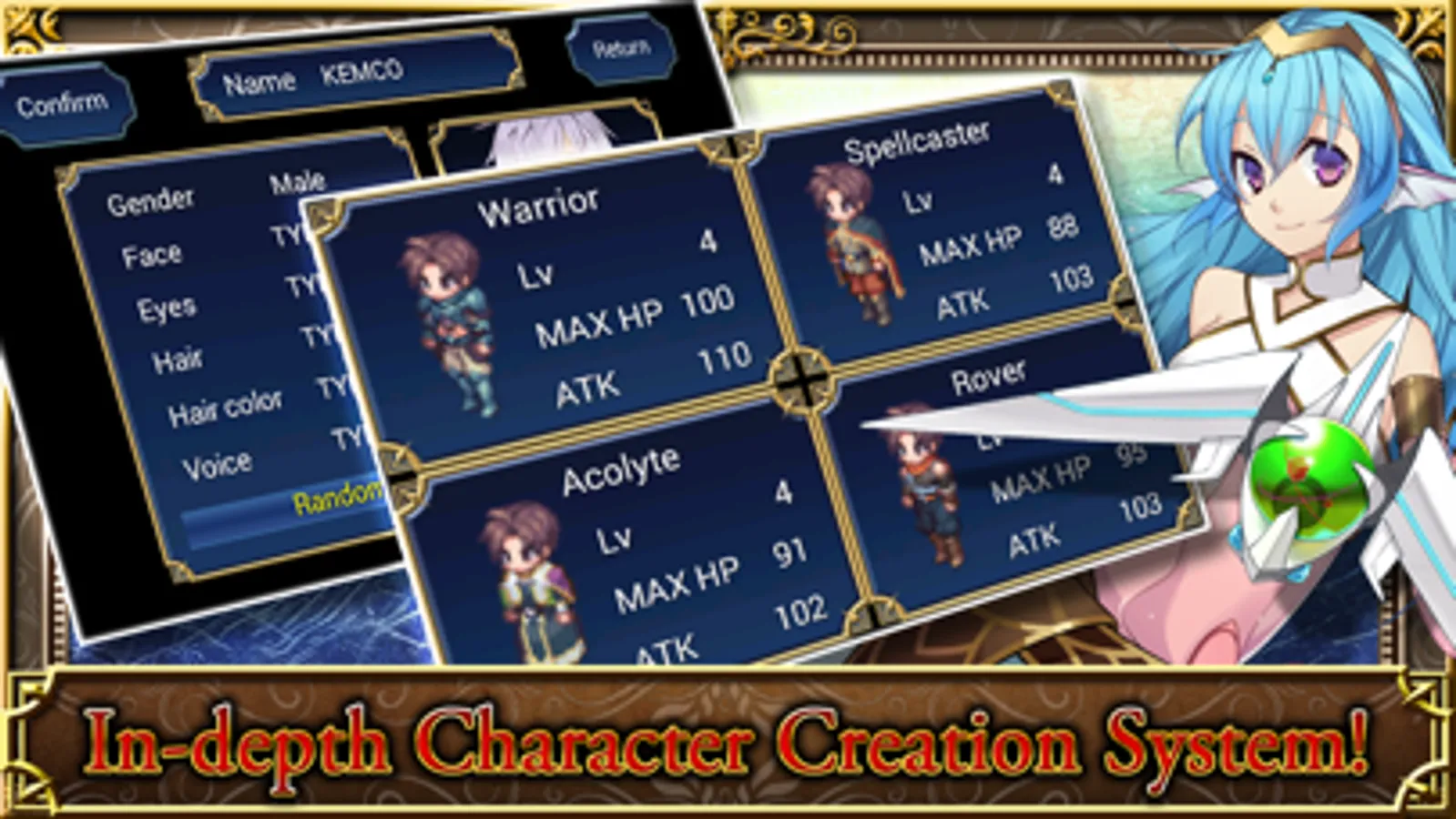 The main character and hired character's face graphics, battle voice, class can all be assigned and/or changed by the player.
