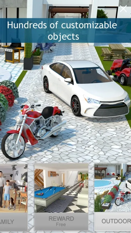 - Decoration : A large selection of paints, brick, wood, ceramic, textile to be used on any object or surface. Expect new free objects on a regular basis.