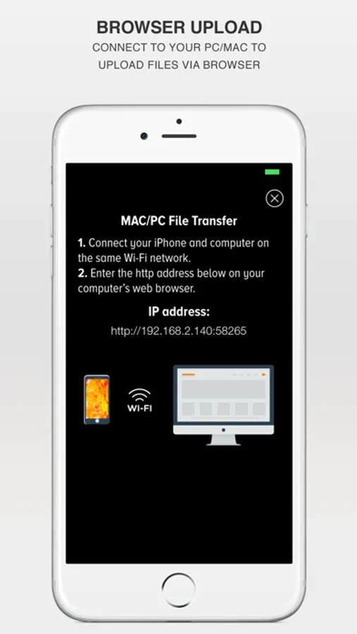 ● Browser Upload – Connect to your PC/Mac upload files via Browser