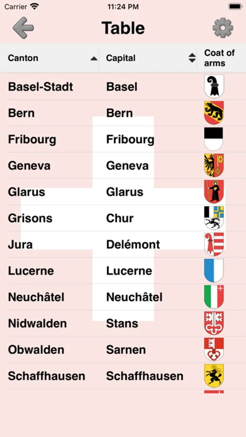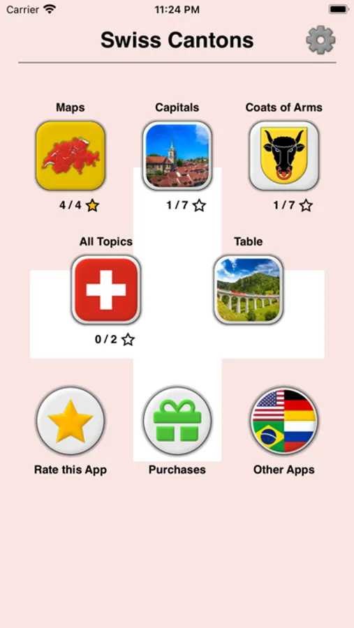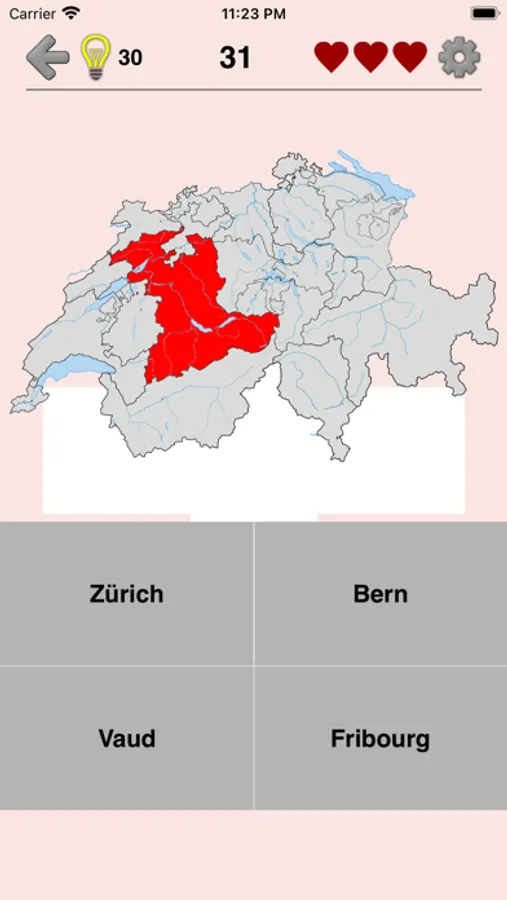 The app is translated into 9 languages, including English as well as the official languages of Switzerland: German, French, and Italian. So you can learn the names of the Swiss cantons in any of them.