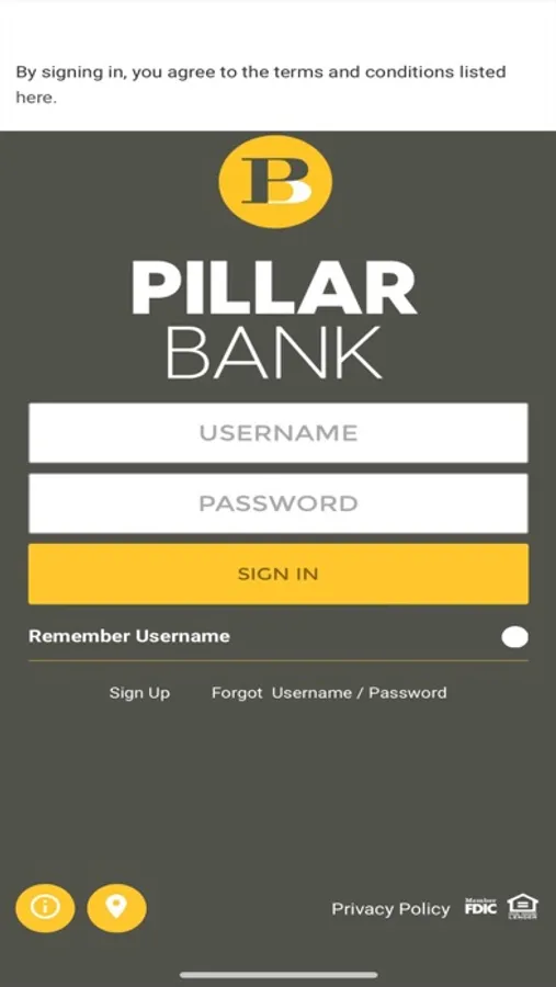To use the Pillar Bank Mobile Banking App, you must be a Pillar Bank Internet Banking user. The Pillar Bank Mobile App allows you to access your accounts using your existing Pillar Bank username and password. To register for Internet banking, please visit www.pillar.bank