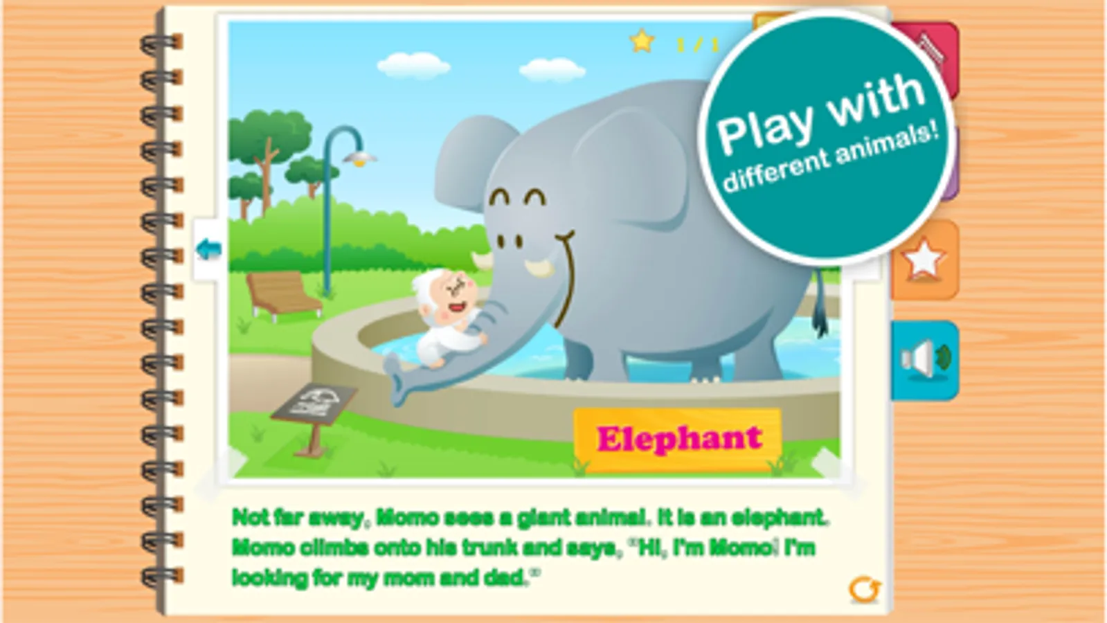 Momo Interactive Storybook Series combine stories and games into an interactive learning experience. Join the journey with Momo to different places, and learn about the words for surrounding objects.