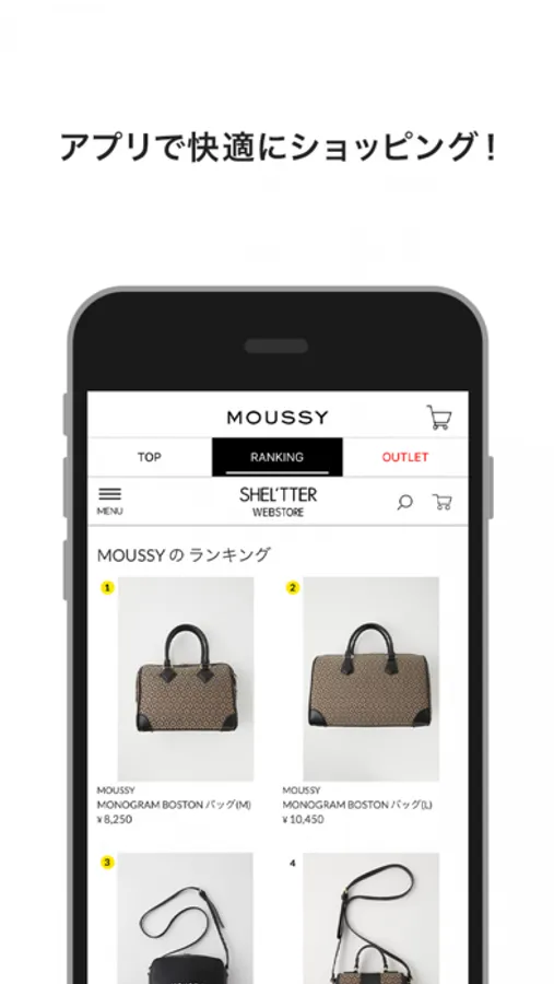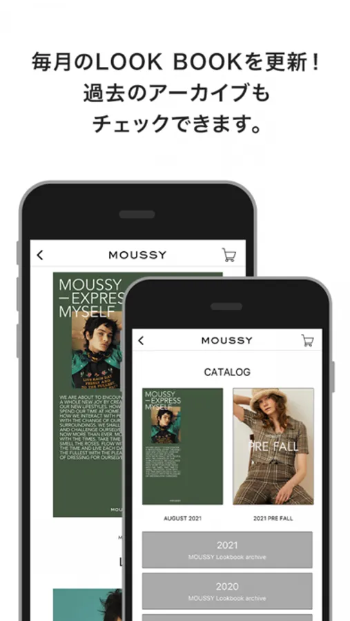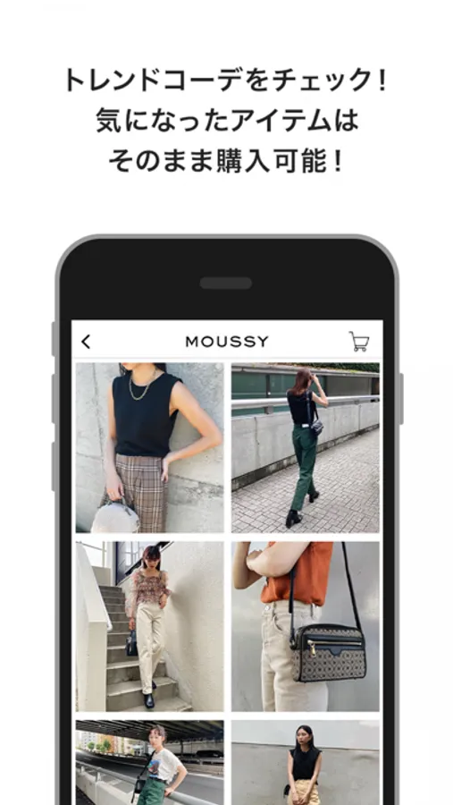 MOUSSYの世界観がつまったコレクションや毎月の新作のコーディネートがいつでもチェックできるのはもちろん、STAFF SNAPも満載で、気になる商品があればウェブストアでその場で購入もできるMOUSSYの情報がギュッとつまったアプリです。