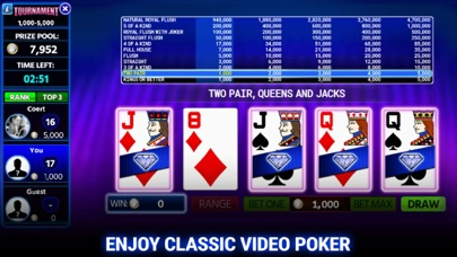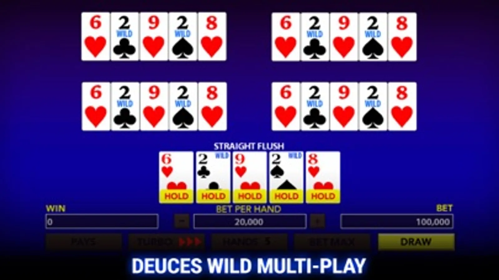 Play Classic Video Poker, Multi-Hand Video Poker or WIN 2x, 4x or 8x in bonus credits playing famous Multi-Play Video Poker™. Experience all the excitement of Las Vegas style casino video poker playing the best FREE video poker app!