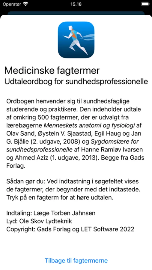 Ordbogen henvender sig til sundhedsfaglige studerende og praktikere. Den indeholder udtale af omkring 500 fagtermer, der er udvalgt fra lærebøgerne Menneskets anatomi og fysiologi af Olav Sand, Øystein V. Sjaastad, Egil Haug og Jan G. Bjålie (2. udgave, 2008) og Sygdomslære for sundhedsprofessionelle af Hanne Ramløv Ivarsen og Ahmed Aziz (1. udgave, 2013). Begge fra Gads Forlag.