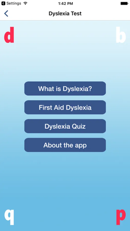This app is meant for children, students and adults either with dyslexia or where there is a chance of dyslexia. You can take the test yourself or as a teacher, parent, family member or colleague, help someone you think could possibly be dyslexic to take the test.