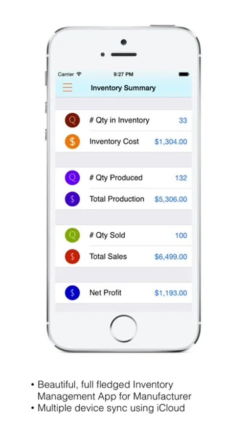 App helps to automate the Manufacturer business. The app supports the functions of create products, capturing production of products, selling products, update the inventory for production of products, ship the selling products, mark the product delivered, once the consignment reaches to customer. Apart from these features, this App have various intuitive reports to run and track the business efficiently by reports like Inventory Cost, Sales Report, Production Report, Profit and Loss Report, Production vs. Sales Report.