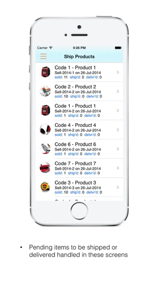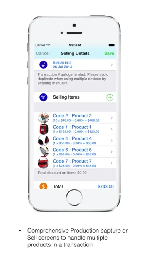 •Selling transactions can be created from home screen and from Sell menu or from Products screen to sell a particular product