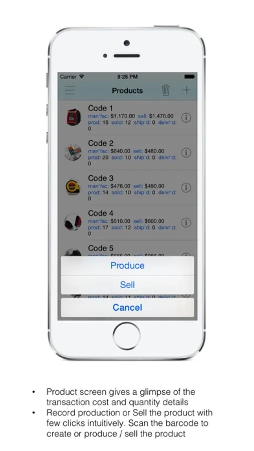 •Production transactions can be created from home screen and from Produce menu or from Products screen to Produce a particular product