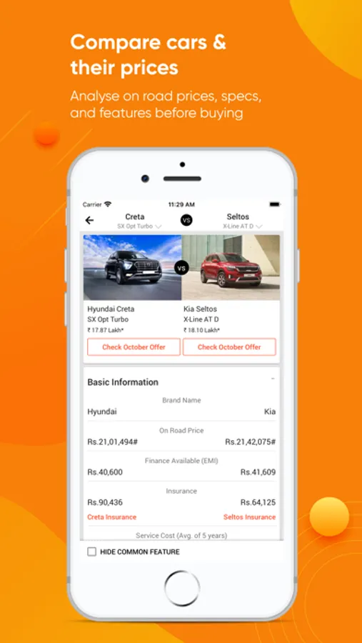 • Compare Car: Compare features, prices, mileage, performance etc. to reach a logical conclusion in your car buying journey.