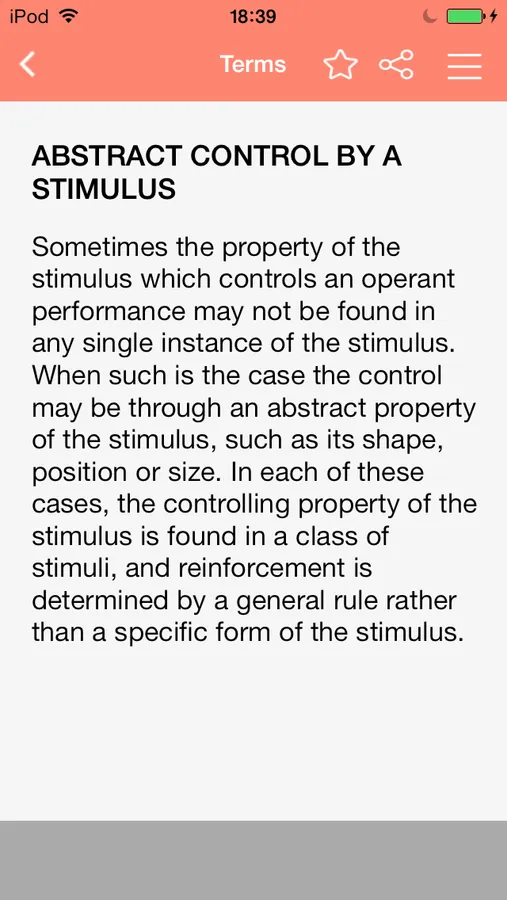 A useful glossary of Applied Behavior Analysis terms and definitions containing over 2,000 entries. Save terms for follow up. Share with your other note taking applications such as Evernote. Easily send terms to colleagues via mail or message.