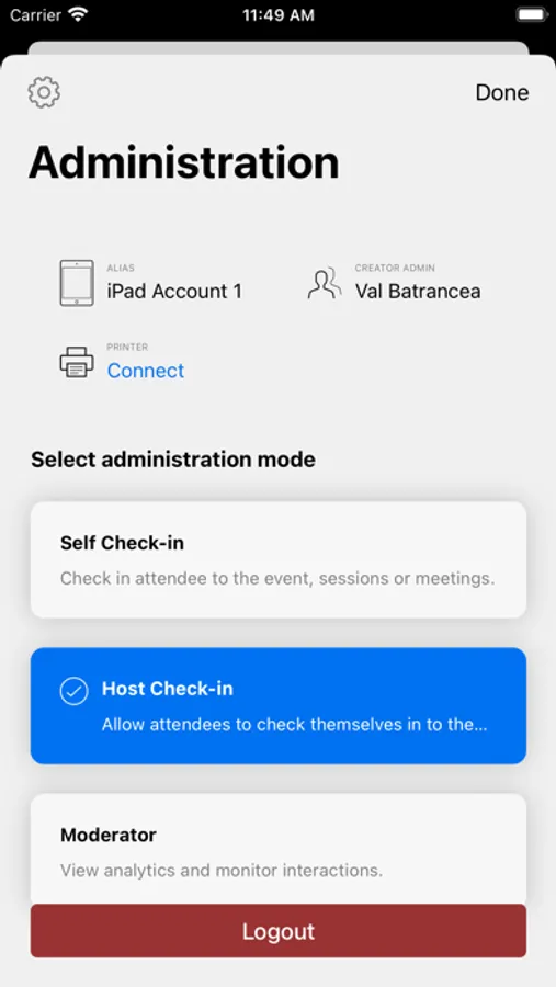 The app also supports printing name badges to supported printers. Please enquire with us regarding steps to set this up on your account.