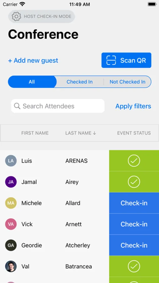 In case guests forget to bring printed badges or emails, the app allows you to seamlessly search for them within the guest list.
