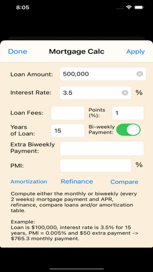 * Allow users to determine how much money and time they may save by refinancing their mortgage.