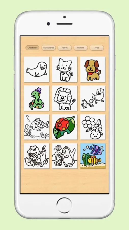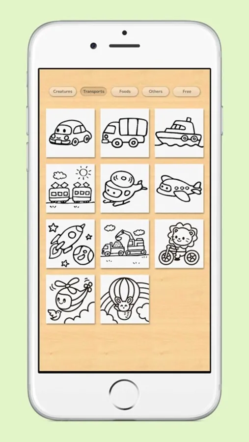 48 coloring of creatures, transports, foods, plants, and others is contained, all free.