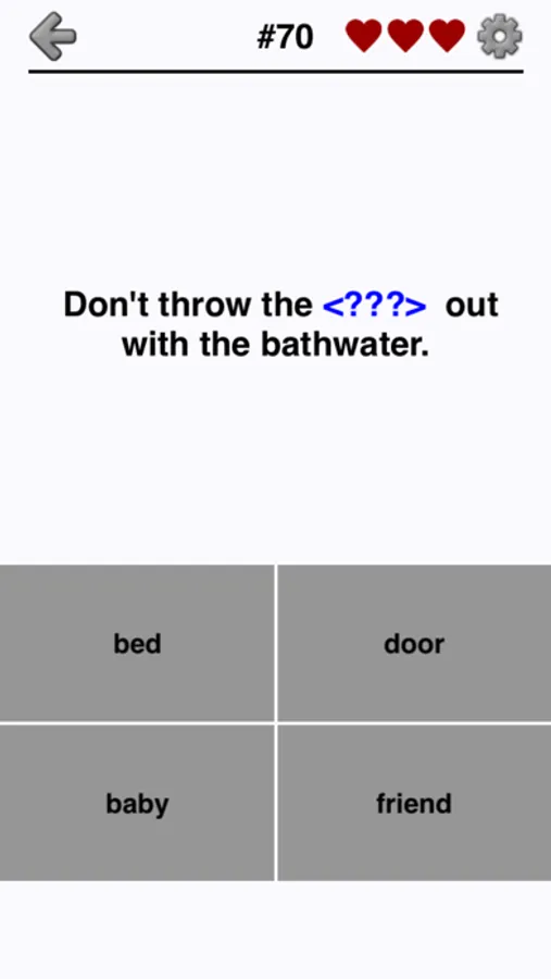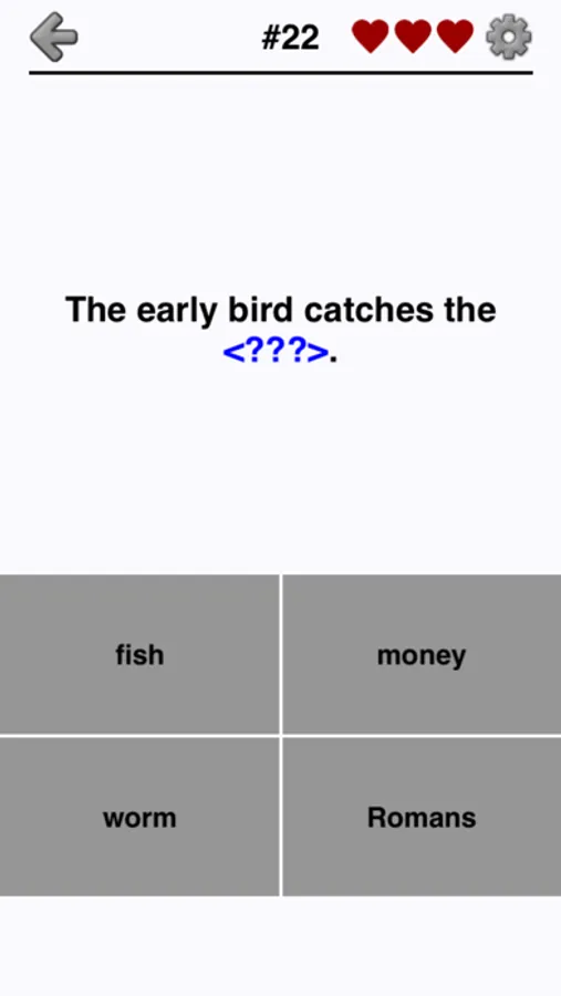 Guess the missing word and finish 200 English proverbs and idioms, such as: “An *** a day keep the doctor away” or “Keep your friends close and your *** closer”.