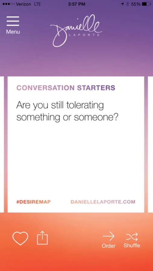 So here’s an expansion tool for all of us: Conversation Starters: A Desire Map App. It has 134 profound questions designed to encourage meaningful conversations. Conversations with your own heart, your partner, your work team, your best friend or a group of friends — maybe, even with a stranger.