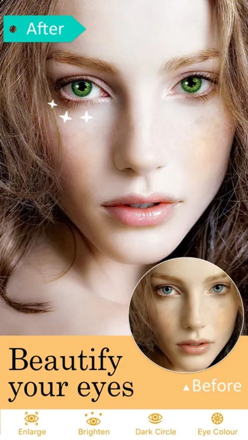 Eye Booth can changer your eyes color, enlarge eyes, remove dark circle and brighten eyes.