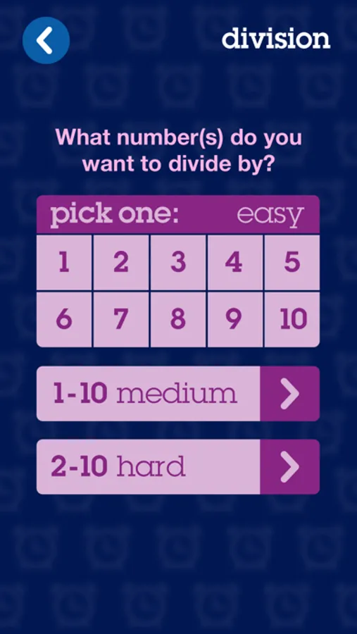• Multiplication and Division include the option to practice individual sets (such as 5’s).