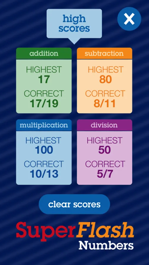 Boost your arithmetic skills with SuperFlash Numbers. This math drill app is a simple and enjoyable way to practice addition, subtraction, multiplication and division. Solve problems presented with colorful flashcards numbered 1 to 100.