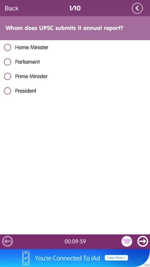 1) Test Mode: In this mode, questions will be displayed and user need to choose the answer and then check if he is correct or not.