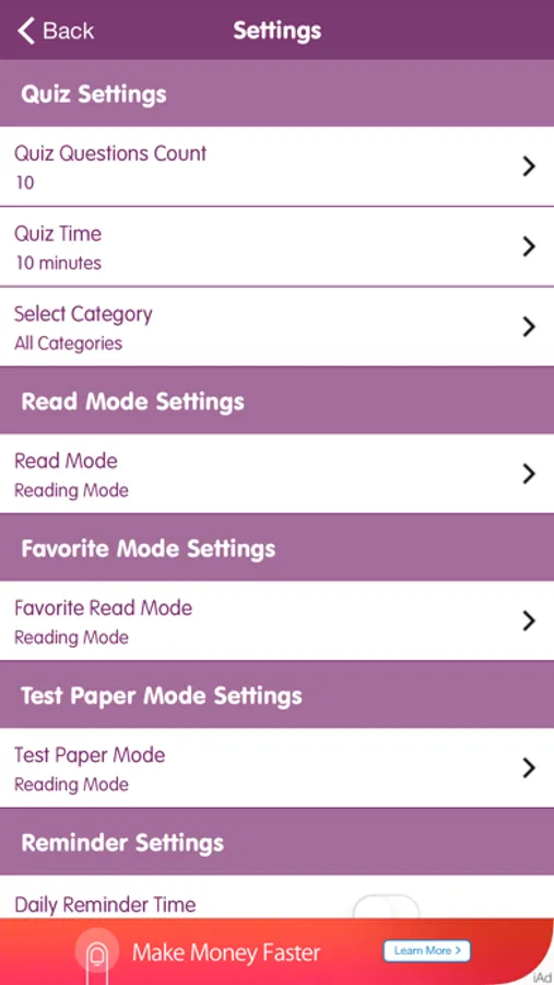 2) Reading Mode: Here question will be displayed with answer. So user can go through easily.