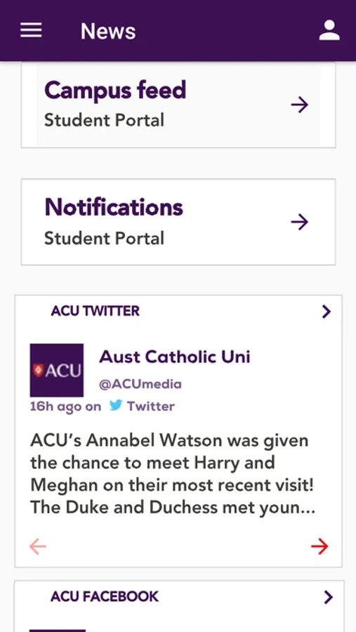 * News: A feed of interesting articles from ACU’s Facebook and Twitter accounts