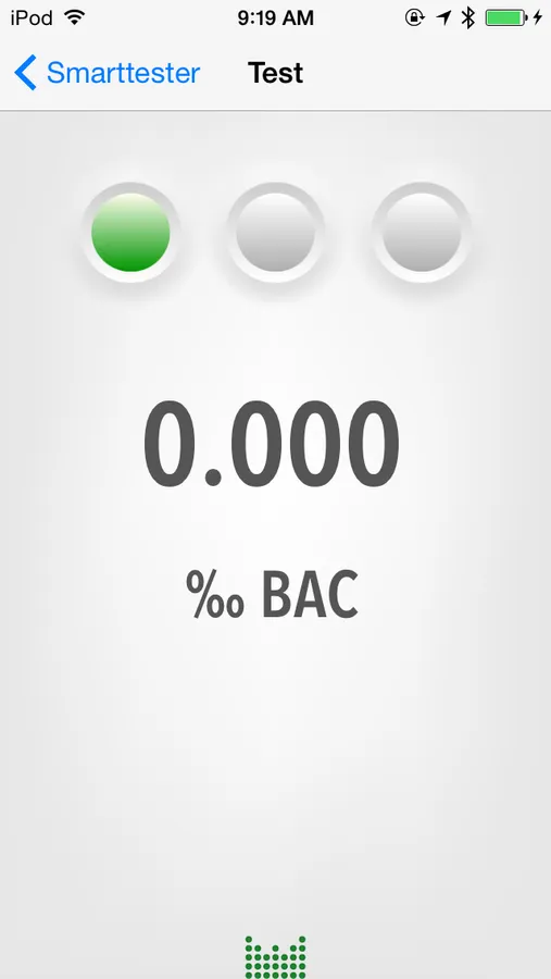 The Smarttester app features a Bluetooth connection to the very smalland mobile Dignita Smarttester breathalyzer.