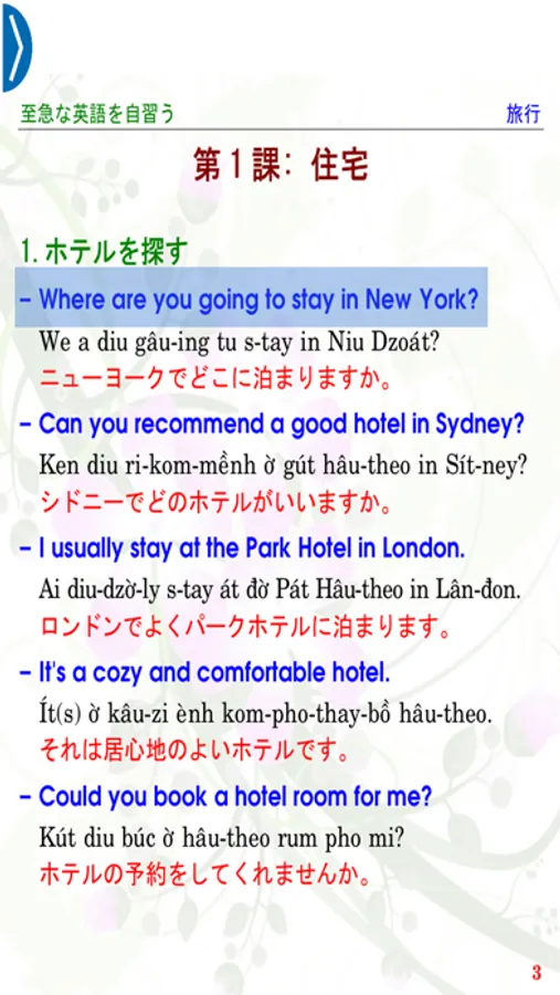 「至急英語を自習する – 旅行 (Travel English)」 は143 ページを含んで、 スマートフォン手に入るとき、「いつでもかどこでも英語を習う」という標準により編纂される。編纂するのうちに、予想外のエラーに影響されやすいので、この本に対応した内容に仕上げるように読者から貴重寄付を受領される望みます。誠に有難うございます、良く効果勉強をお祈り!我々のスマート・ブック-イ・ブック(SmartBooks) を使用するとき、以下ように役に立ちます:髪本値段(伝統な本)よりこの本値段のほが安い;我々の本を買うとき、読者は一回お金を支払うだけで、失ったり、裂けの心配ない永遠本を使用する及び追加支払わなくて新本更新するとき、すべての権利を享有される;この本は音(オーディオ)を添付して統合されて、読むとき、各句記号をつける。分からないどこか再聞きたいとき、その句に手を触ったら、あなたははっきり再聴きます ; 以外に、イ・ブック (SmartBooks)は特集音声録音)(読み方を練習したあなたの音声) の機能もある。あなたは、アイコン・ヘッドホン(聞いて、書きます)に押すとき、あなたはキーボードか手で聞いた句の再聞いて、書かれるように機能を添付するスクリーンを出頭します。これは、あなたに本を読んで言語を学習することを便利するようにデジタル技術時代での我々の突破一つです。