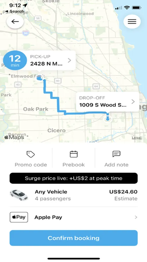 • Enter your destination address (this allows us to provide an estimated fare amount)