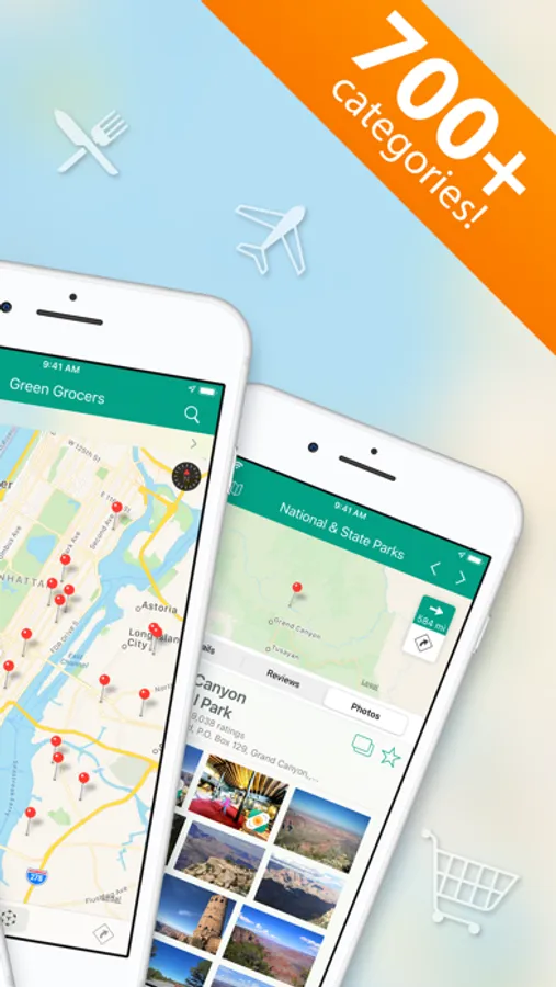 Show your favorite places, select your favorite category or search by voice. And the included Apple Watch app displays nearby results right on your wrist! The included iMessage app lets you search for locations and share them in a conversation without leaving the Messages app.