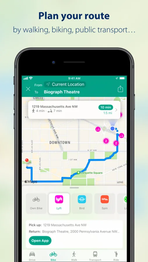 Whether by car, bike, walking or public transport, Where To? gets you where you want to go. Use the built-in route planner or any of more than 80 apps from the App Store. The bike navigation also supports shared bikes and scooters from more than 180 micromobility services.