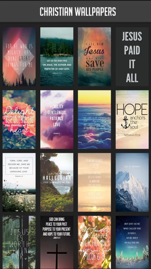 The wallpapers in this app will help to inspire and uplift you with powerful faith-based quotes, bible verses and psalms. Many of the quotes are directly from the Holy Bible. The Bible, the primary text of Christianity, is full of wisdom about how to live our lives in the way of the Lord. Give yourself a little reminder of God's love each day by setting your favorite Christian quote as your wallpaper! The wallpapers in this app also show beautiful nature landscapes, such as sunshine, forests and mountains.