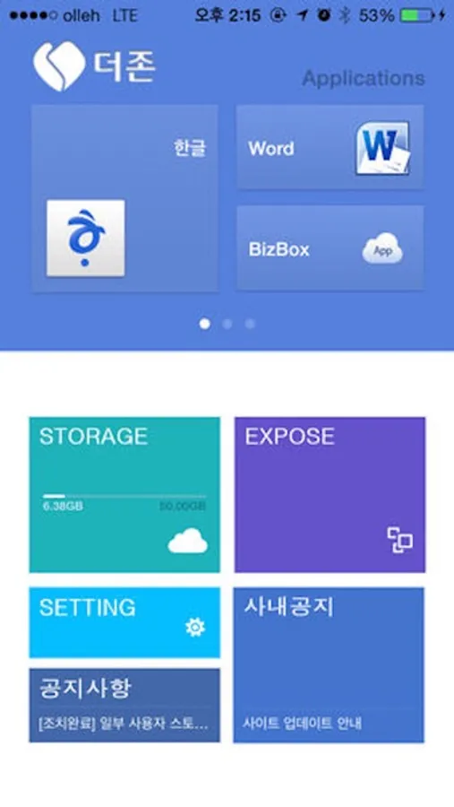 D-Cloud PE의 클라우드 스토리지 서비스입니다. 모바일에서도 웹이나 PC와 동일한 스토리지 환경을 제공합니다. 모바일에서도 파일을 업로드/다운로드 하고 가상화 애플리케이션을 통해 실행할 수 있습니다.