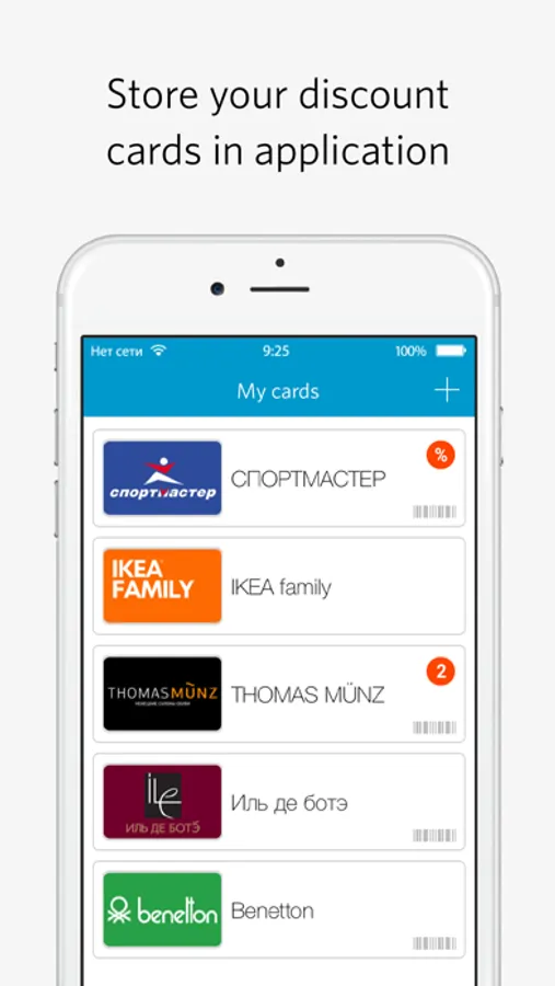 Leave your mass of cards at home! All you need to get a discount is to show card image in the app to the cashier.