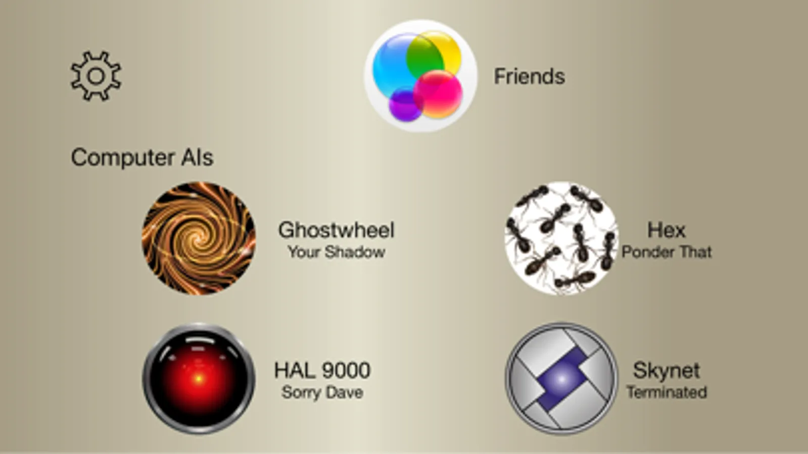 Play against a Game Center friend or play against one of the computer’s four personalities, Ghostwheel, HAL, Hex, or Skynet. Whether they shadow you, play strictly by the rules, wander around, or try to terminate your every move, they are all fun.