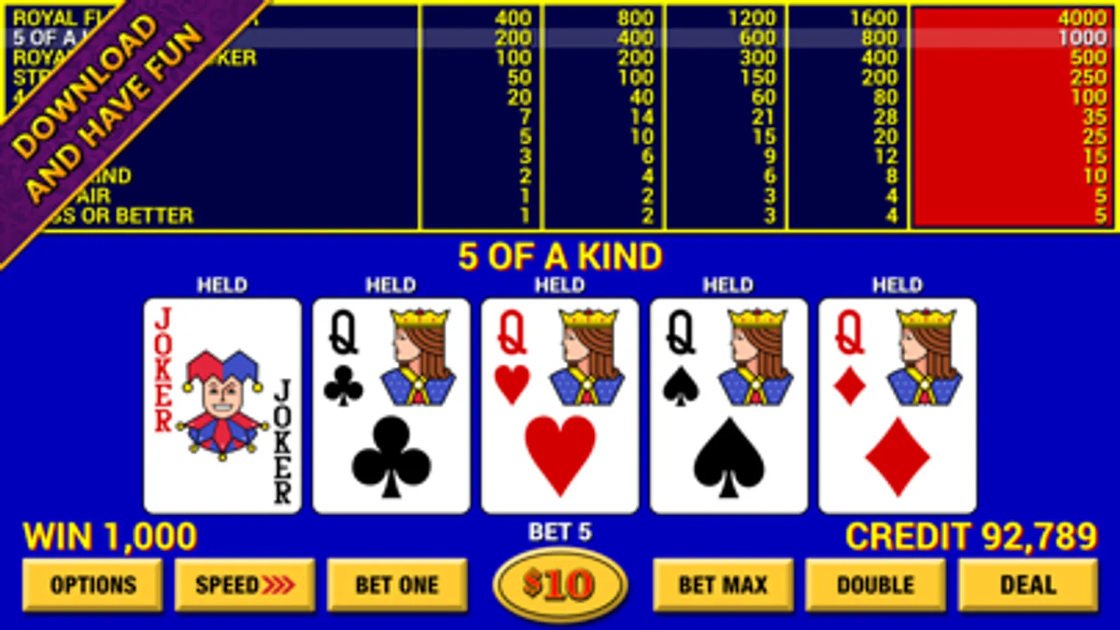 • VARIETY - 18 video poker games including Jacks or Better, Deuces Wild, Joker Poker and more