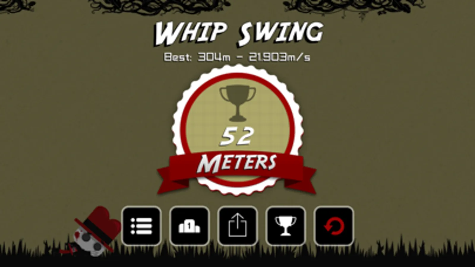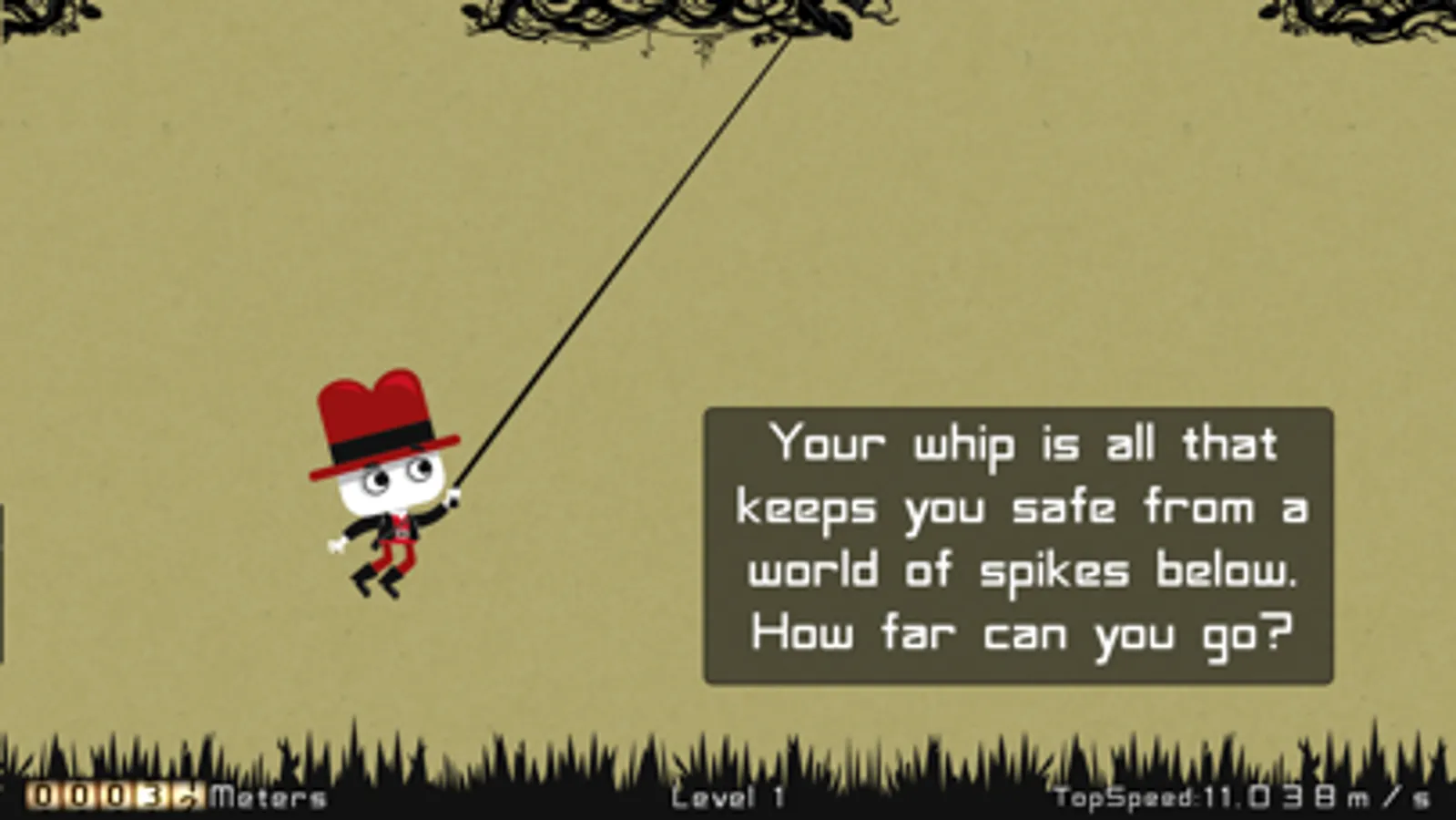 Pick up your trusty bullwhip and travel as far as you can across a field of spikes by swinging over them.