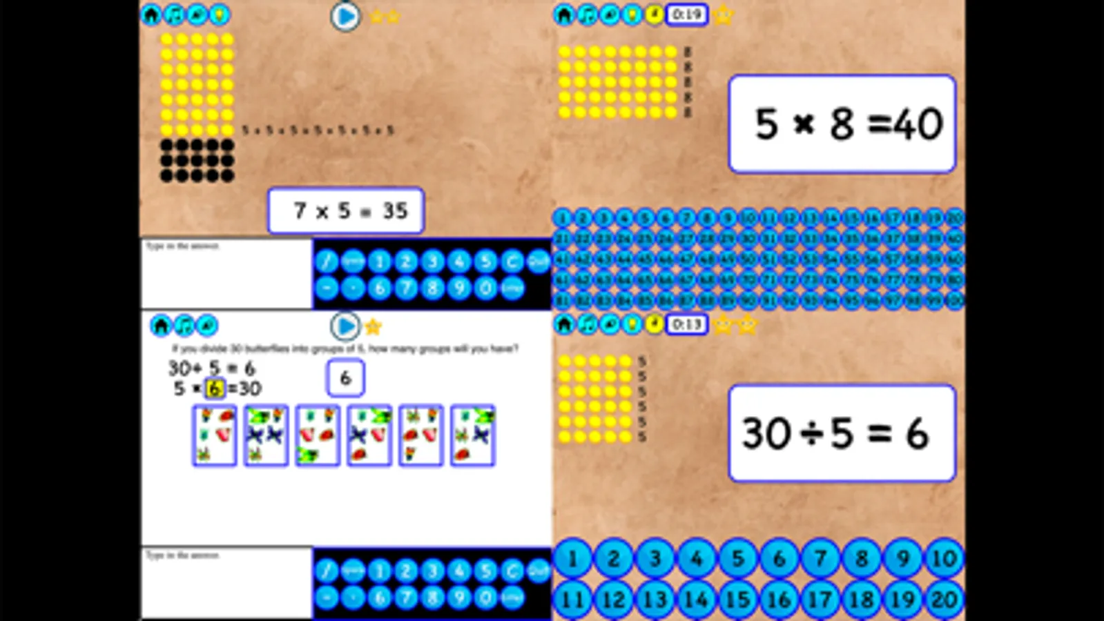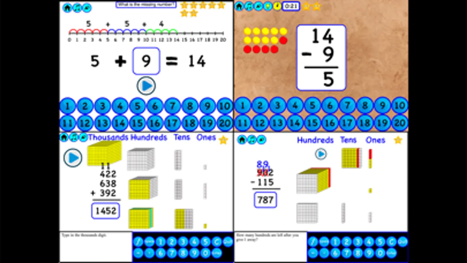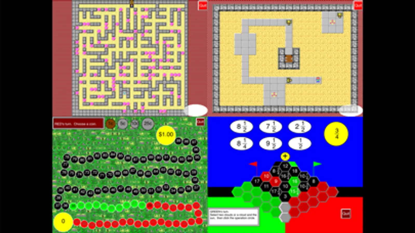 By solving problems students earn robots to use in a maze game, plus other math games and flashcards for all four operations.
