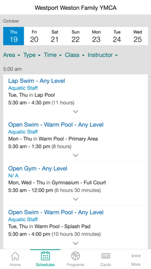 • Easily view schedules for each day and filter for the types of classes that you like.