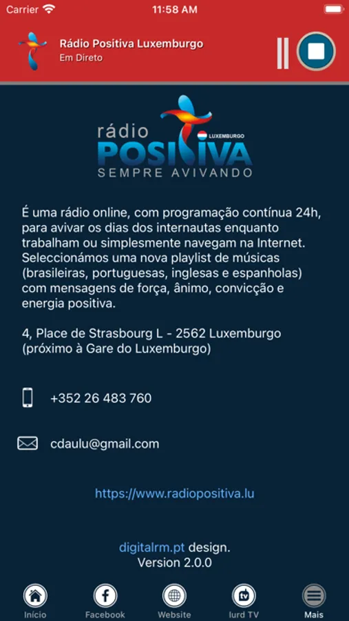 É uma rádio online, com programação contínua 24h, para avivar os dias dos internautas enquanto trabalham ou simplesmente navegam na Internet. Seleccionámos uma nova playlist de músicas (brasileiras, portuguesas, inglesas e espanholas) com mensagens de força, ânimo, convicção e energia positiva.