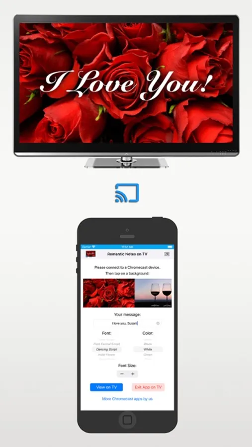 You can set up the TV screen with your message and leave it on - the message will keep showing even after you disconnect your iPhone or iPad (perfect for leaving a love note when going out)!