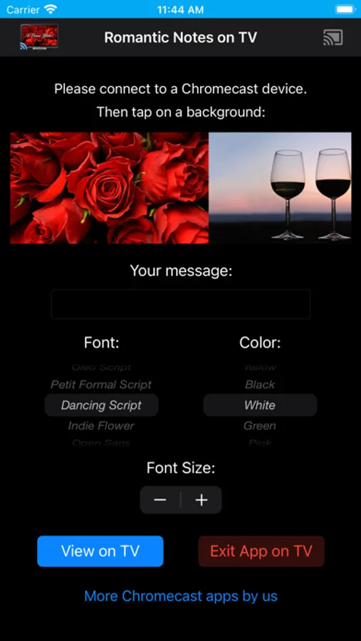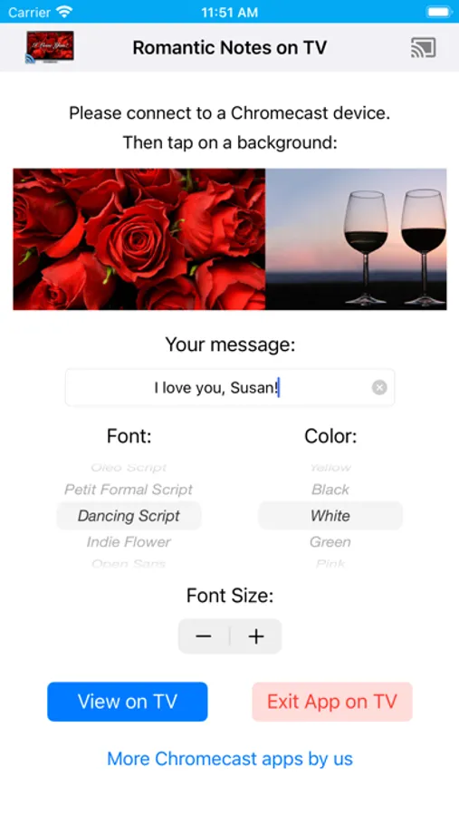 • Choose your message's font, size and color (see the change on the TV screen immediately)