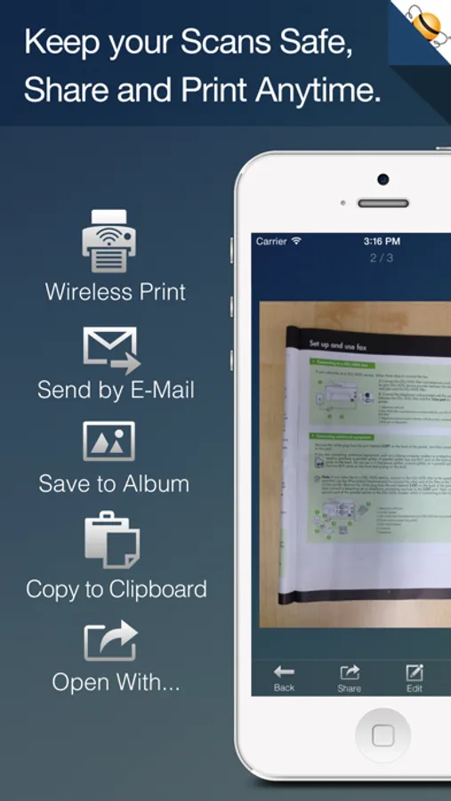 PDF Scanner boasts a professional yet easy-to-use interface, simple workflow with an extremely neat, clear interface and interactive gestures. It can easily print & fax with HP, Canon, Kodak and other printers.